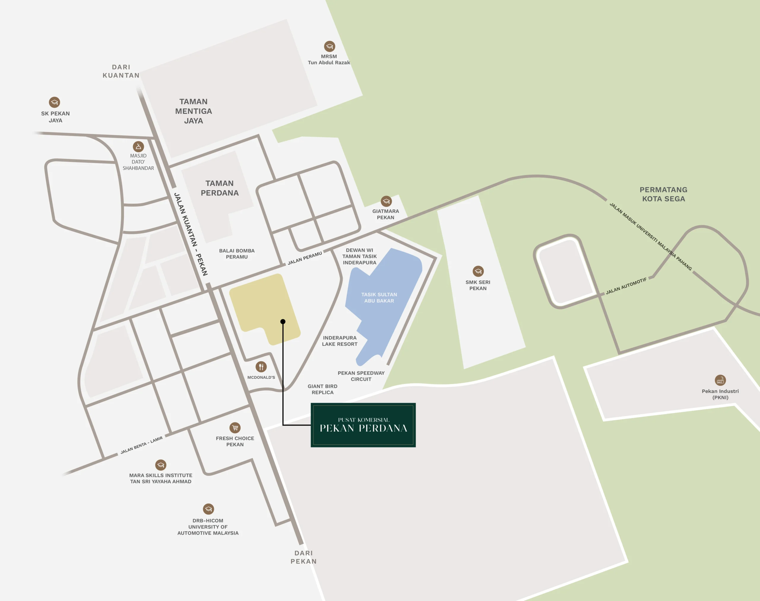Pusat Komersial Pekan Perdana terletak di lokasi utama bandar Pekan yang mudah diakses dan sangat strategik.